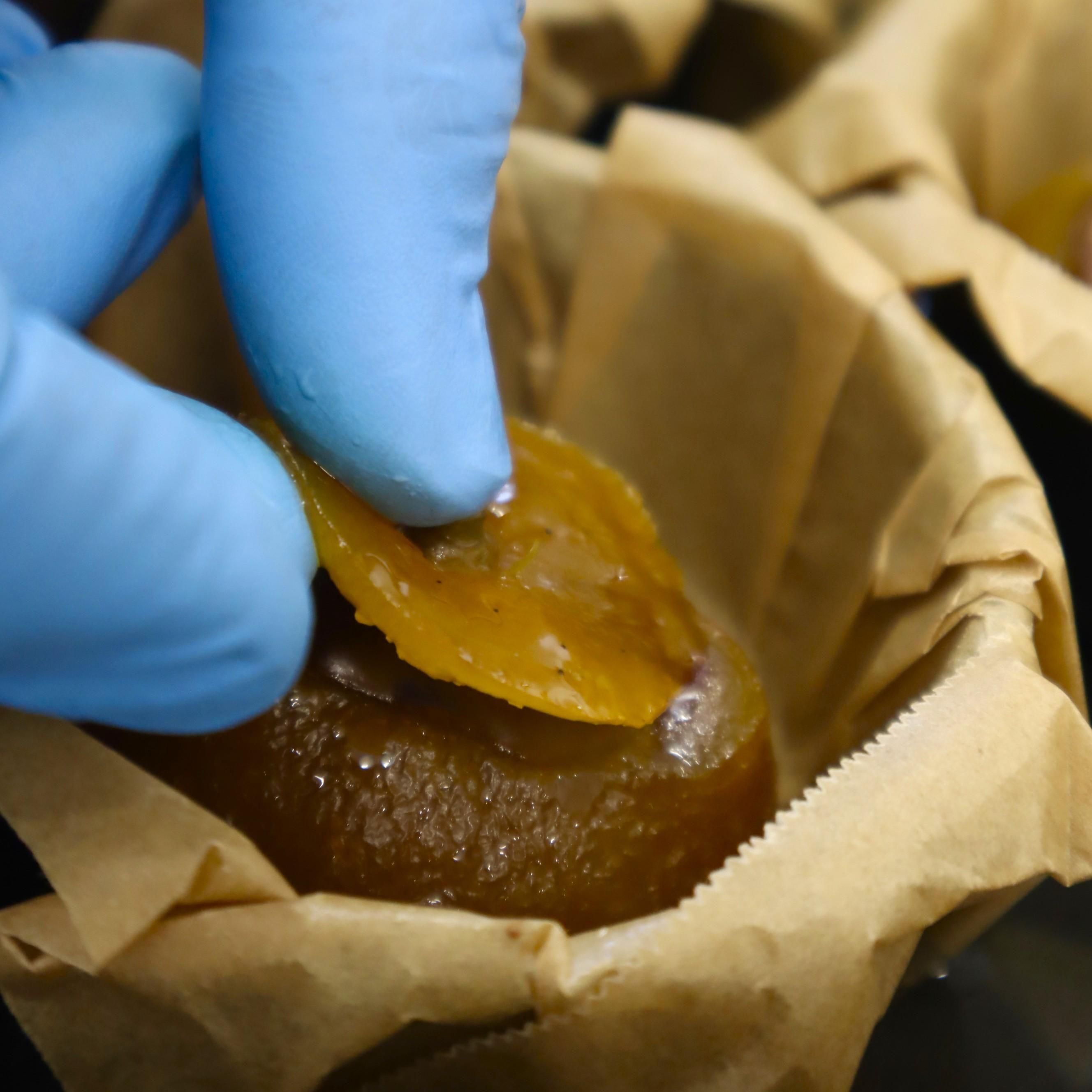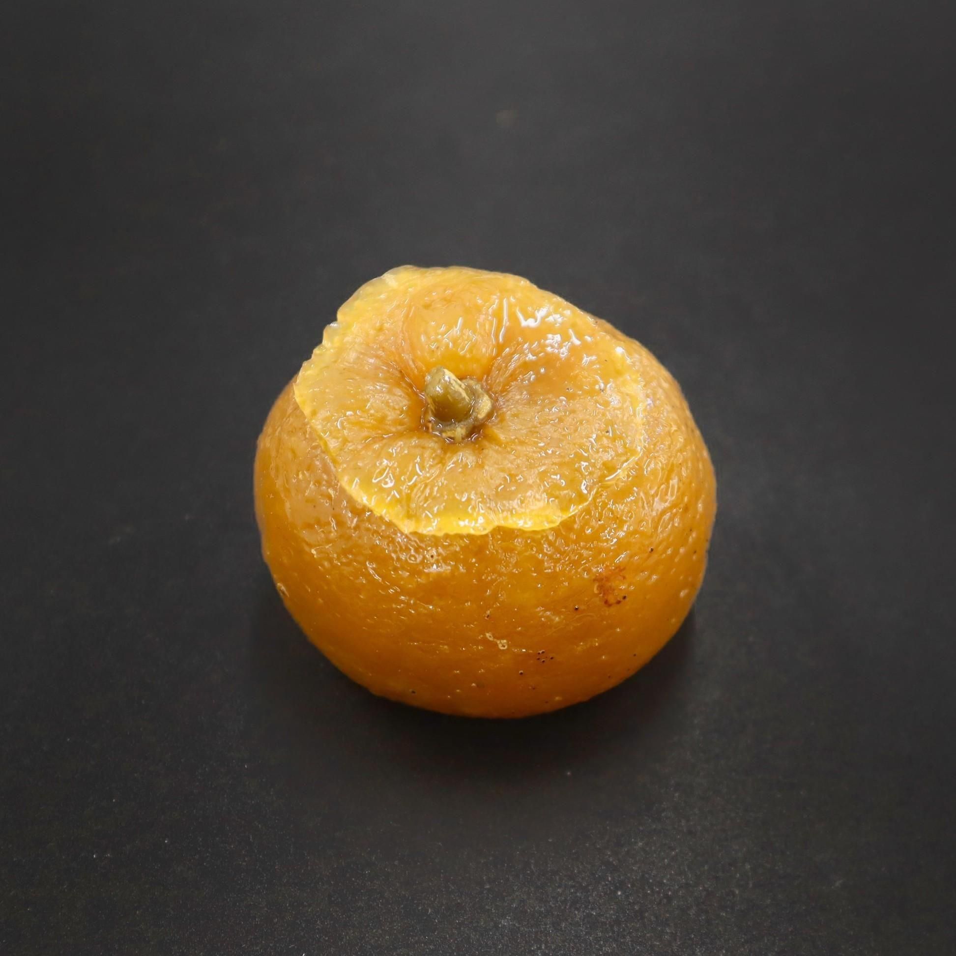 一つひとつ丁寧に中身をくり抜いた柚子を蜜漬けし、器として使用。